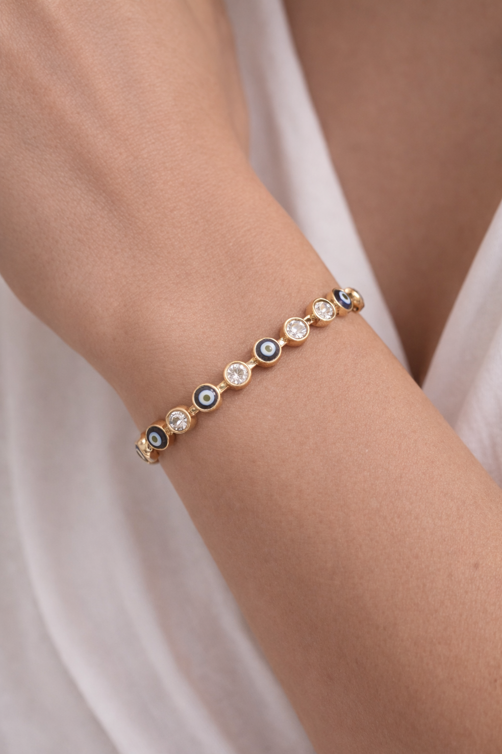 -Nazar Boncuklu ve Taş Detaylı Bileklik