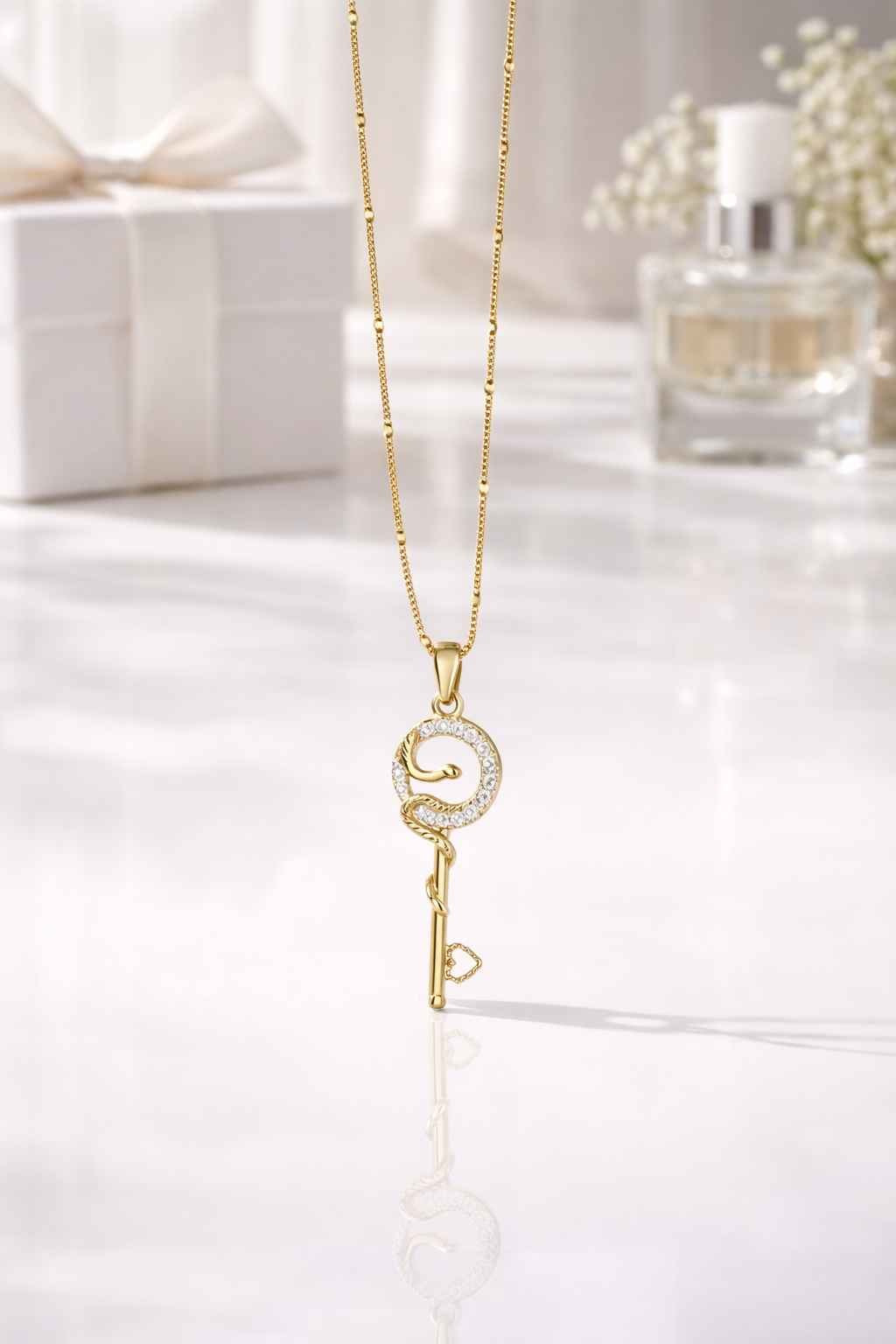 -Taş Detaylı Anahtar Kolye