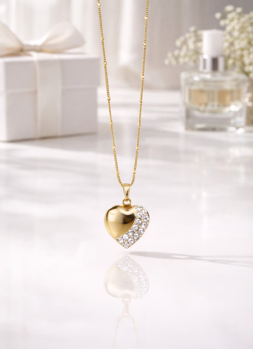 -Taş Detaylı Kalp Figürlü Kolye