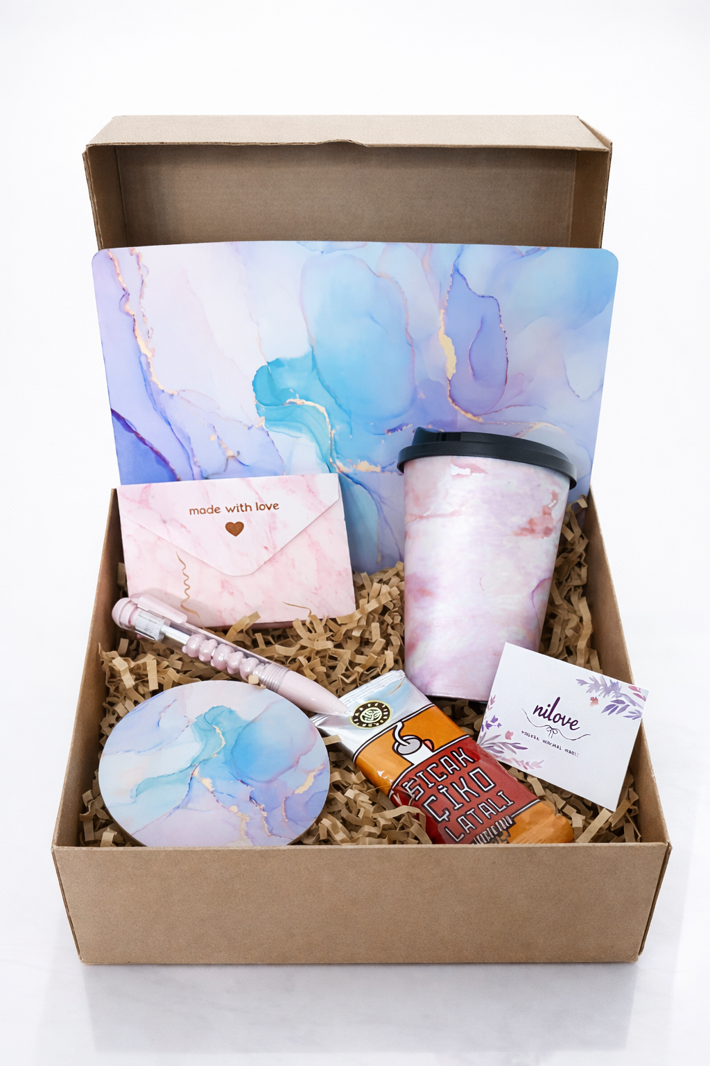 -1 Adet Pembe Mermer Desenli Mektup Defter