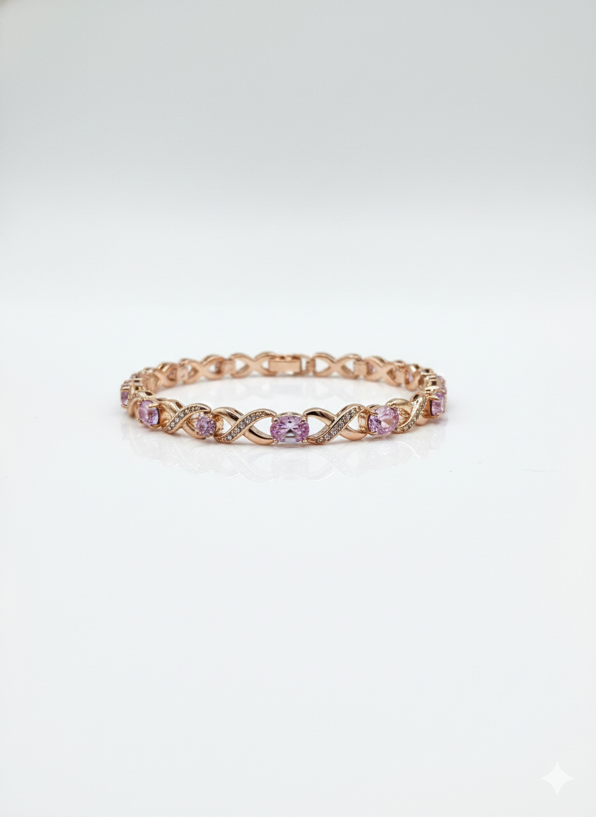 -Zarif Pembe Taşlı Sonsuzluk Motif Figürlü